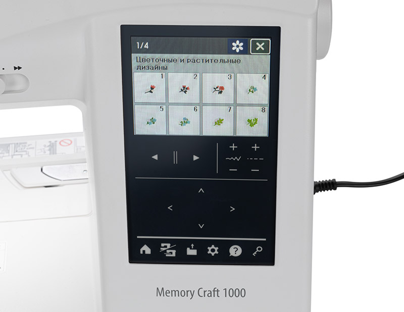 Цветной сенсорный экран диагональю 9 см позволит легко редактировать дизайны прямо на машине, без ПК — изменяйте размер, поворачивайте, отражайте дизайны, комбинируйте узоры и буквы, создавайте монограммы разных форм.