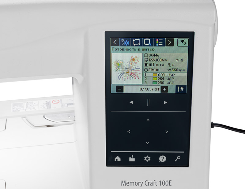 Цветной сенсорный экран диагональю 9 см позволит легко редактировать дизайны прямо на машине, без ПК — изменяйте размер, поворачивайте, отражайте дизайны, комбинируйте узоры и буквы, создавайте монограммы разных форм.