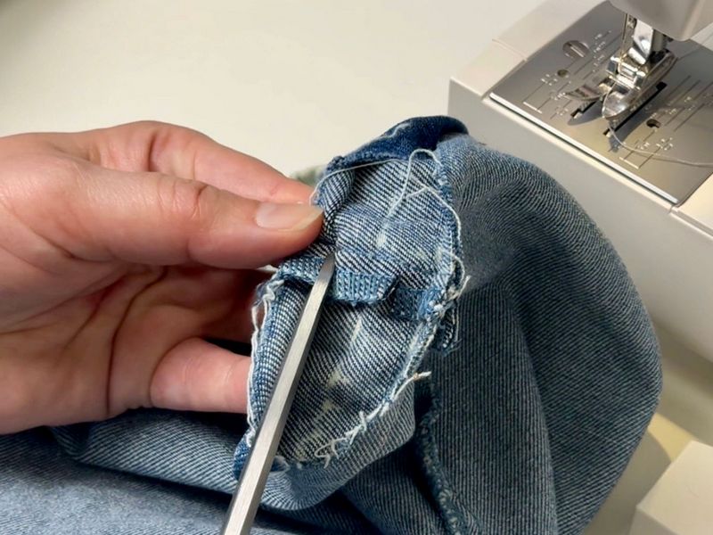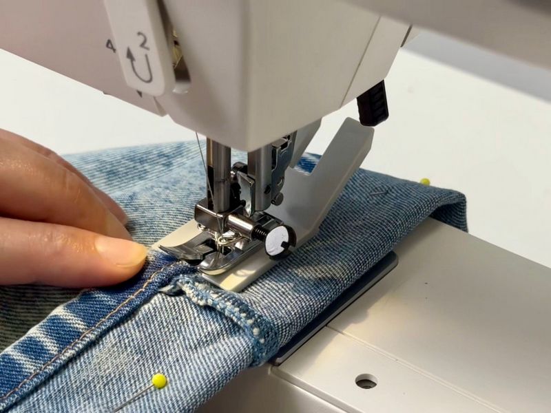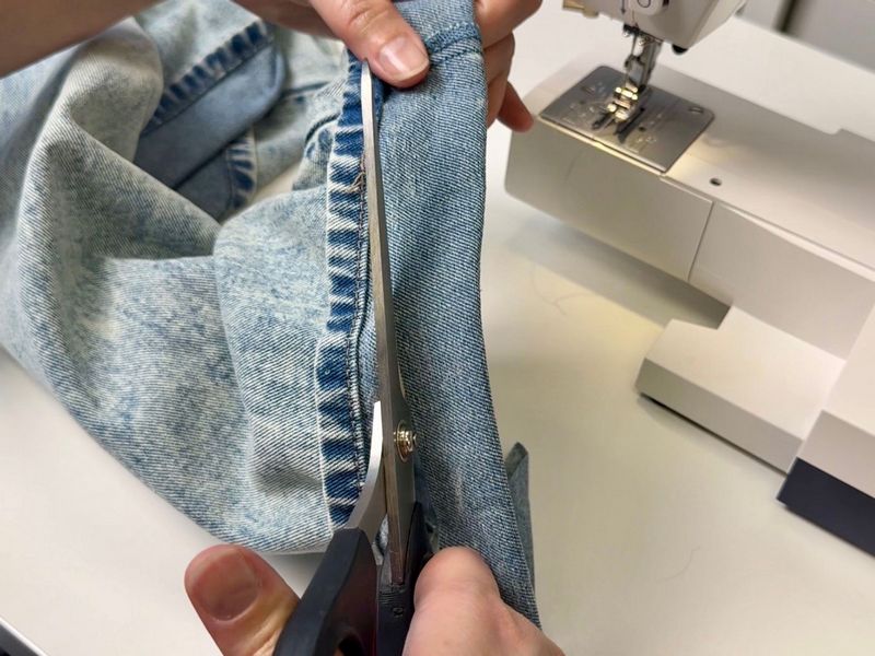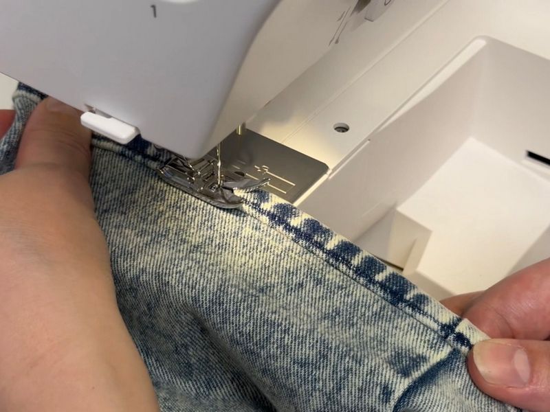 Завершите работу, проложив прямую строчку по месту распоротого фабричного шва обычными или отделочными нитками.
