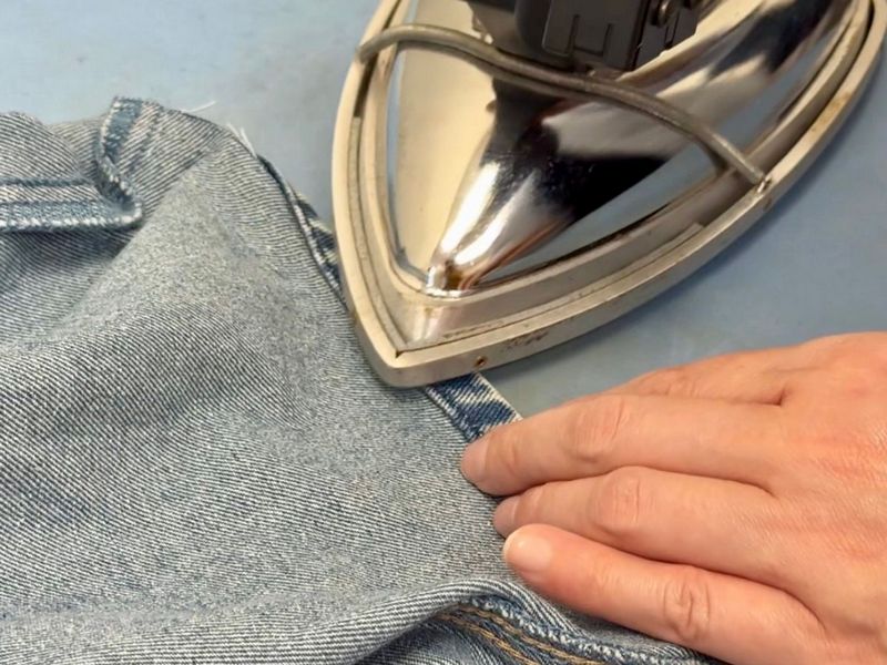 Джинсы получили нужную длину, а фабричный край, строчка и внешний вид полностью сохранены. Такой способ позволяет добиться аккуратного результата и сэкономить от 1000 до 2500 рублей на услугах ателье — а главное, приобрести полезный навык для повседневной жизни.