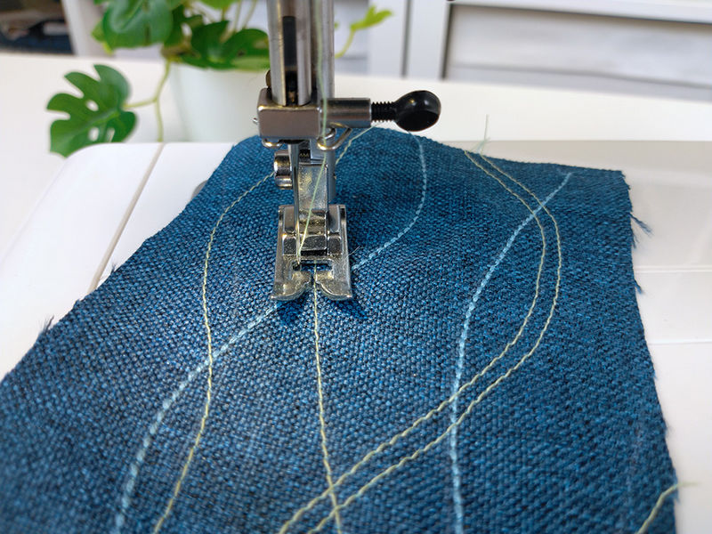 Деталь 10*17 вышиваем декоративными строчками. Мы использовали усиленный прямой стежок. Чтобы его получить регулятором выбора строчек выставите прямой стежок, а регулятор длины стежка переведите в положение S1.